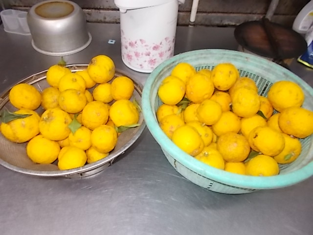 てげてげさんからのゆずが 段ボールン中で あたいを待っています 送ってもらってから1週間 もうそろそろ いけんかせなと思いながら1週間 今日は朝から 用事もなく 取っかかりました 例年のことなので段取りはわかっています なにせ 量が多い 洗って 半分に切って ジュウスと種を分け その後中の綿を取り出し やっと皮を切ります そこまで3時間 切っている最中には 綿を煮てジャムにします 柚子味噌も同時進行 皮は3どばっかい 煮こぼし そいでもえぐみが残ります 柚子味噌も なべんそこがこがれんごと まぜくい まぜくい 全部終わるころは 夕方になりましたこしこしておけば いっでんなめができます 手仕事はなかなかです |